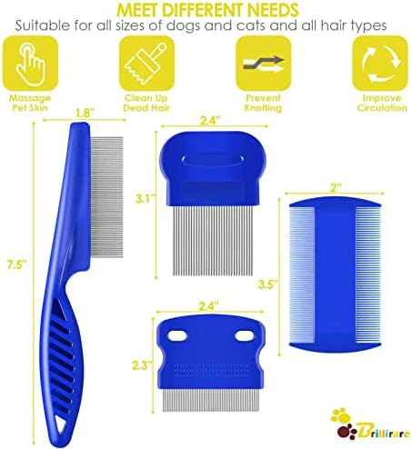 THOUGHTFUL SET: Our pet grooming comb set includes 4 different kinds of flea combs, 1 tooth comb, 1 double sides lice comb, 1 long-needle & 1 short-needle comb to meet different needs. Perfect for straightening out the knotted tangles hair, as well as finishing and fluffing.