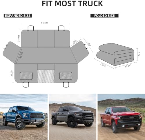 【Fits most truck】The dimensions of truck floor cover are 55.5*25.2inches.ABE back seat pet cover for dogs is specially designed for full size trucks.The dog bed for truck is suitable for F150 /RAM 1500/Silverado/GMC/Tundra…