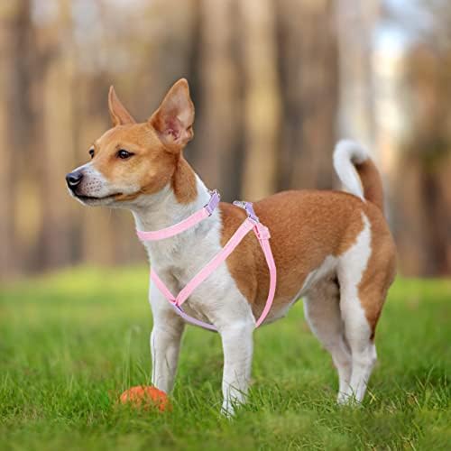 AIITLE Step in Dog Harness & Leash & Collar – Multicolor Lightweight Dog Halter Basic Collar with A 5FT Leash – for Extra Small Dogs Daily Walking and Training Pink-Purple XS