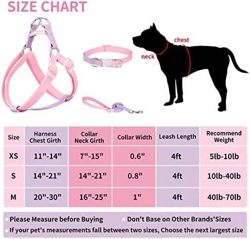 THREE IN ONE – Package includes [1 x Dog harness, 1 x Leash and 1 x Dog collar] A pack of 3 parts, a perfect suit. Please MEASURE your pet’s chest (full part) girth and neck girth before purchase. Sizing does You can refer to Our Size Guide and sizing chart for the best fit. If in between sizes, please order one size up. AIITLE Dogs Harness Set include the sizes from XS-M for Extra-Small Small Medium breed up to 70 lbs.