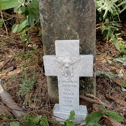 1.Honor your beloved pet with this beautifully personalized Pet Dog Memorial Cross Resting Place Decorative Headstone. Made of durable resin, this cross is beautifully designed with fine details and realistic stone texture.