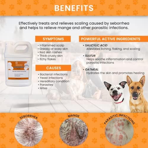 Antiparasitic & Antiseborrheic Dog Shampoo – Sulfur, Salicylic Acid and Oatmeal – Dry, Itchy, Hot Spot, Dermatitis (1 Gal)