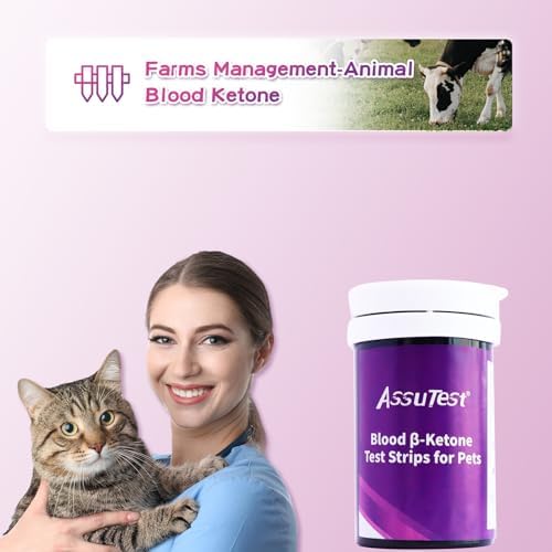 AssuTest® Blood Ketone Test Strips for Pets β-Ketone Farm Testing – Accurate, Easy-to-use Ketosis Detection Tool for Cows Cats and Dogs, Home Veterinary Supplies – 25 Pcs/Box with 25 Lancets