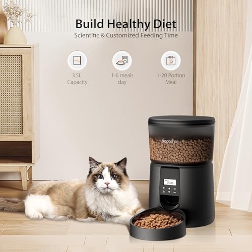 Automatic Cat Feeder – Timed Automatic Cat Food Dispenser with 10s Voice Record, Desiccant Bag, 3.5L Auto Pet Feeder for Cats and Small Dogs, Up to 20 Portions 6 Meals Per Day