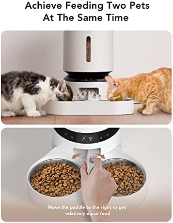 Feed Two Cats: PETLIBRO automatic cat feeder for two cats comes with an adjustable meal splitter. The unique movable meal splitter ensures food is distributed evenly, and the size of the portions can be adjusted to suit the needs of different cats and dogs. So you can be sure your pets won’t have any fights. And you can check the feeding records to ensure your cat or dog has been fed on a set schedule by APP and also can be controlled from multiple family members’smartphones.