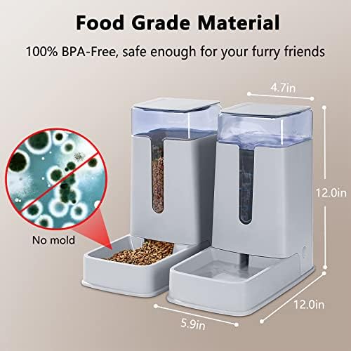 Automatic Cat Feeders 2 Packs with Cat Water Dispenser and Cat Food Dispenser Automatic Dog Feeder and Dog Water Dispenser for Small Medium Big Pet Dog Cat Puppy Kitten 1 Gallon