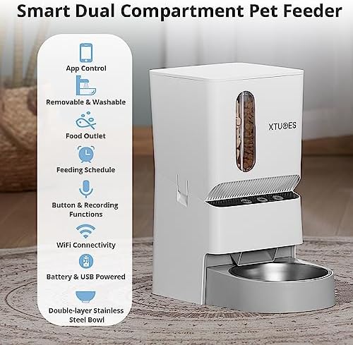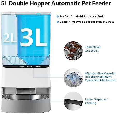 Automatic Cat Feeders,Double Hopper Automatic Cat Food Dispenser with Freshness Preservation,Timed Cat Feeders for Dry Food,Cat Feeder 2.4G Wi-Fi Enabled App Control Stainless Steel Bowl for Cats Dogs