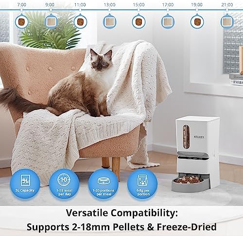 🌸🌸【2.4GHz Wifi Smart Cat Feeder with APP】-Our smart pet feeder supports 2.4GHz Wifi network, free download APP (Tuya) to set feeding time and food amount to automatically feed your pet,The phone’s wifi and Bluetooth are turned on at the same time to speed up the search for our XTUOES feeder products. You can keep track of your feeding records anytime, anywhere. You can feeding your pets even thought you’re not at home, and keeping your pet on a healthy diet. (Note: not for 5G)