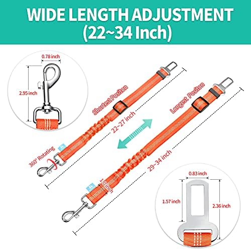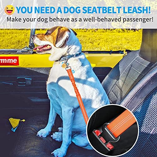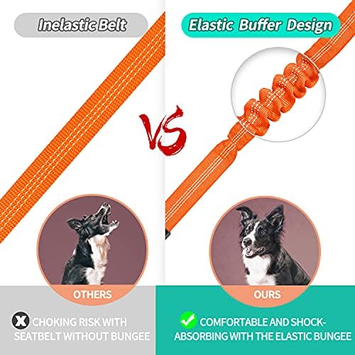 BAAPET Dog Seatbelt Leash for Cars, 2-Packs Pet Safety Seat Belt Harness with Shock Absorbing Bungee and Reflective Threads for Car Dogs Restraint (Black+Orange, Standard+Standard)