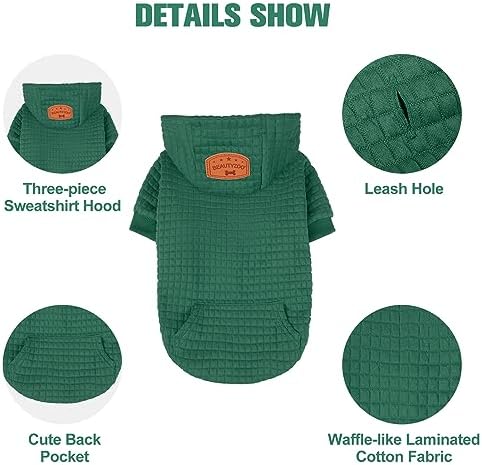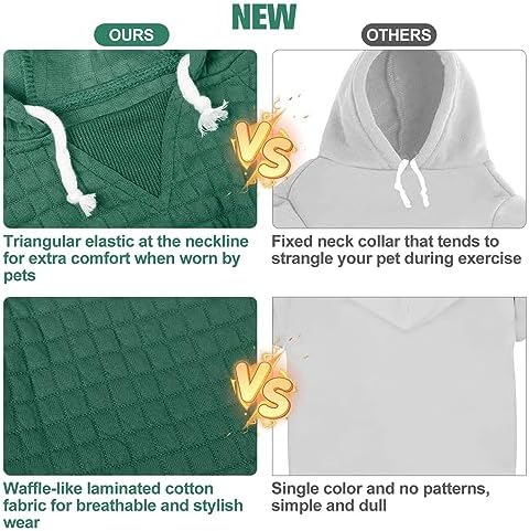 WARM & BREATHABLE : Made from 95% polyester and 5% spandex, with a waffle-like laminated cotton. Our pet long sleeve tops coat is soft and comfortable, fresh and natural to wear and will keep your pet warm in cold weather without feeling stuffy. Soft and smooth, this dog hoodie is non-irritating and will not cause damage to your pet’s skin.