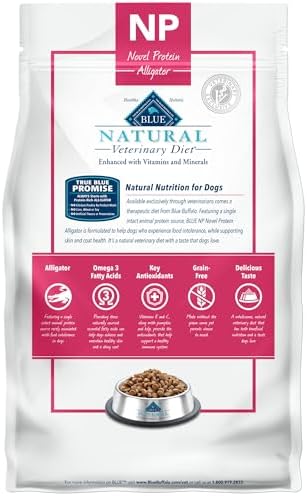 SENSITIVE STOMACH AND SENSITIVE SKIN DOG FOOD: BLUE Natural Veterinary Diet NP Novel Protein – Alligator dry dog food is formulated to help manage sensitive skin and stomach conditions in dogs who have food intolerance