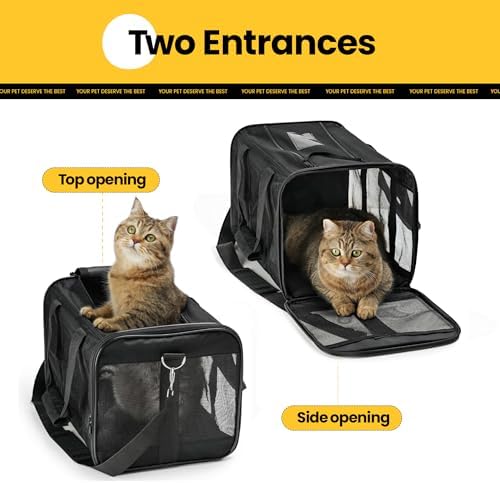 Cat Carrier Airline Approved, Soft-Sided Dog Carrier with Inner Safety Leash, Pet Transport Carrier for Small-Medium Cats Puppies up to 15 Lbs, Collapsible Travel Kitten Carrier Bag -BlackM