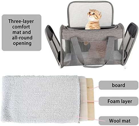 Cat Carrying Case – Pet Carrier Airline Approved, Protable and Breathable Pet Travel Carrier Removable Fleece Pad, Collapsible Cat Carrier Dog Carrier for Medium Cats Small Cats Dogs (X-Large, Grey)