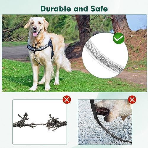 𝐂𝐇𝐄𝐖 𝐏𝐑𝐎𝐎𝐅 & 𝐀𝐍𝐓𝐈 𝐑𝐔𝐒𝐓:Our upgraded dog collar safety clip consists of stainless steel hooks and 5.0mm steel wire rope, comparing with the nylon and metal chain material on the market, it has better anti-rust and anti-corrosion properties, chew proof, not easy to break or fade, and can be used repeatedly for a long time.