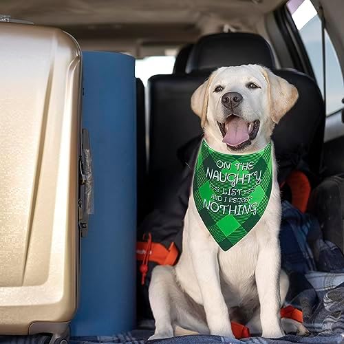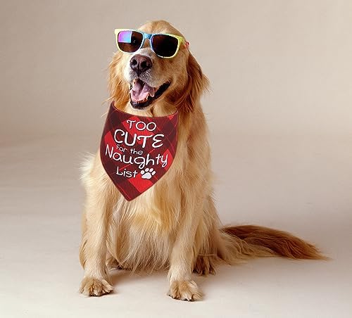 【FUNNY DESIGN】Original deisgn “Too cute for the naughty list” printed on classic red and green plaid dog bandana. Make it an interesting christmas themed décor for your pet dogs.