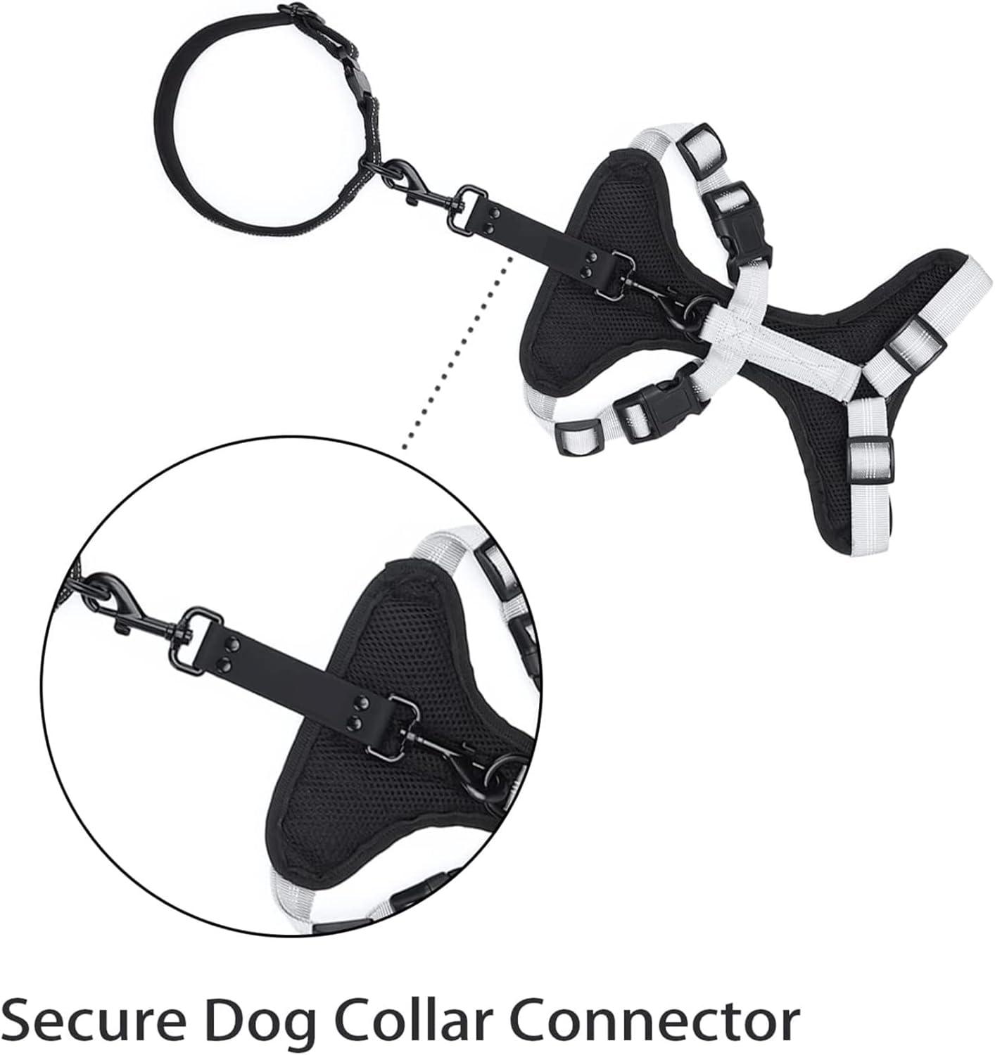PERFECT ADDITION FOR ESCAPE PROOFING HARNESS – Dog collar connector works for dog harness, flat collars, Martingale collars, pinch collars, prong collars and all other collars, making it easy to attach the collar to the harness no matter what they are wearing.
