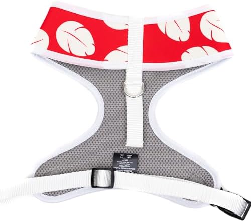 Disney Pet Harness, Dog Collar Plastic Buckle, Lilo and Stitch Sitting Pose and Leaves Red White