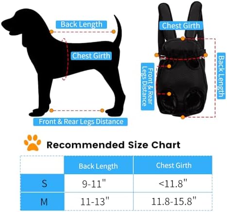 Dog Cat Backpack Carrier, Dog Carrier Backpacks for Small Medium Dogs, Pet Dog Front Chest Carriers Backpack, Puppy Carrier Sling Backpack, Holder Papoose for Dog Baby Cat Body (Black, S)
