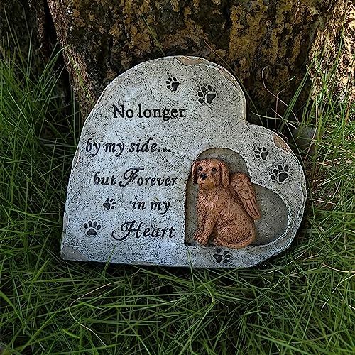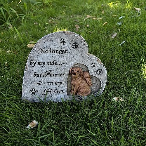 Dog Memorial Gifts for Loss of Dog, Forever Remembered Dog Memorial Stone, Heart Shaped Pet Grave Stone, Sympathy Gift for Pet Loss(A)