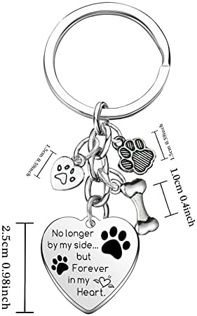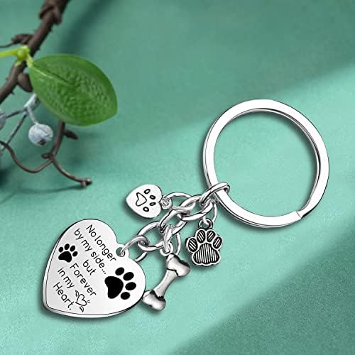 Dog Memorial Gifts Pet Memorial Keychain No Longer by My Side Forever in My Heart Key Chain Loss of Dog Gifts Paw Prints Charm Sympathy Gift