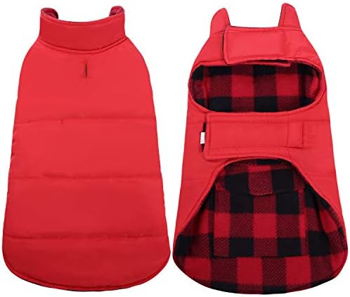 Dog Winter Coat, ASENKU Dog Fleece Jacket Plaid Reversible Dog Vest Waterproof Windproof Cold Weather Dog Clothes Pet Apparel for Small Medium Large Dogs Red L