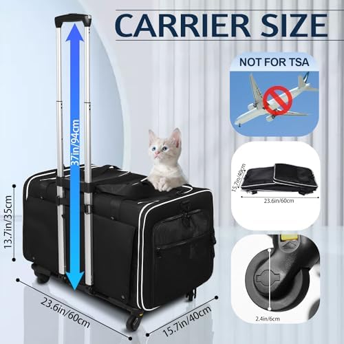 Double Cat Carrier with Wheels Rolling Pet Carrier for 2 Dogs Cats Up to 35lbs Removable Wheels Dog Carrier 2 Compartment for Traveling Camping (Dark Black)