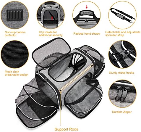 Estarer Soft Sided Pet Carrier Airline Approved, 4 Sides Expandable Collapsible Cat Carrier with Pockets & Removable Fleece Pad, Travel Carrier Bag for Cat Dog & Small Animals (Grey)