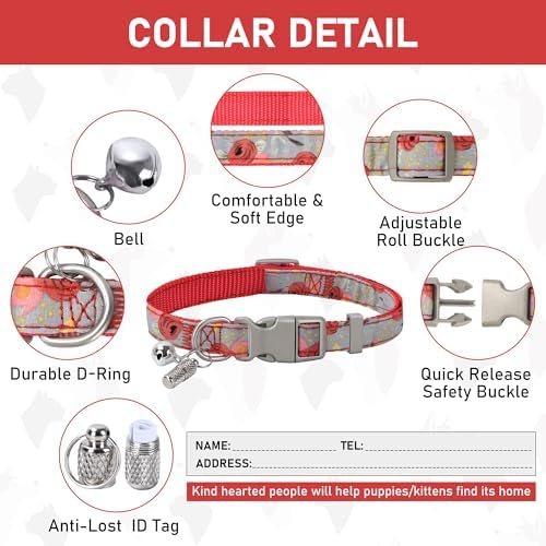 DOG HARNESS, COLLAR AND LEASH: The package includes three items, a adjustable harness, a collar, and a 5ft matching leash. The collar is with bell and ID tag, the leash is increase with a 360-degree rotation metal hook, and the harness is adopted with a quick release buckle and double D-rings which are very heavy-duty. You don’t need to spend extra time looking through other accessories, but you get all of these items at the same time with less money! So this is a very cost effective option.
