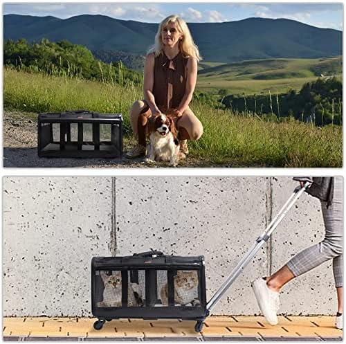GJEASE Cat Rolling Carrier for 2 Cats,Double-Compartment Pet Rolling Carrier with Wheels for 2 Pets,for Up to 35 LBS,Super Ventilated Design,Ideal for Traveling/Hiking/Camping