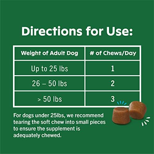 From the makers of vet recommended GREENIES brand, GREENIES Supplements is making it easy to care for your dog’s health needs. Supplement your dog’s joint health with GREENIES Hip & Joint Supplements, formulated by a team of Ph.D. Animal Nutritionists to support healthy joints, flexibility and mobility. Made for adult dogs of all sizes, GREENIES Hip and Joint Dog Supplements contain active ingredients Glucosamine and Chondroitin to help your dog continue to be active and come in an irresistible soft chew made with real chicken. Additionally, GREENIES Hip & Joint Dog Supplements are made in the USA with quality ingredients from around the world with no artificial colors, flavors, or preservatives, and are made without fillers. Simply give once a day to help keep your dog at their best so you can enjoy happy days together. Trace amounts may be present due to potential cross-contact during manufacturing.