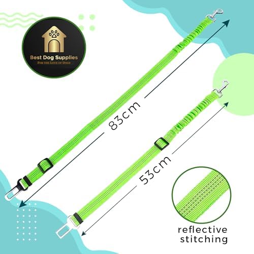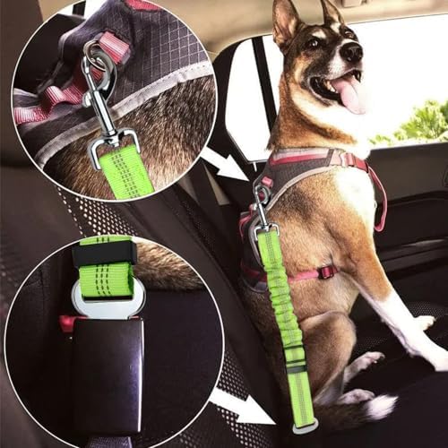 Heavy Duty Nylon Dog Seat Belt for Car – Adjustable, Reflective and Safe Pet Seatbelt for Traveling with Your Pet – Perfect for Cars, SUVs and Trucks (Green)
