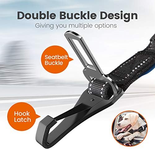 IOKHEIRA Dog Seatbelt, Updated Adjustable Harness Reflective Bungee Dog Car Seat Belt with Aviation Aluminum Alloy Rotatable Carabiner, Hook & Buckle