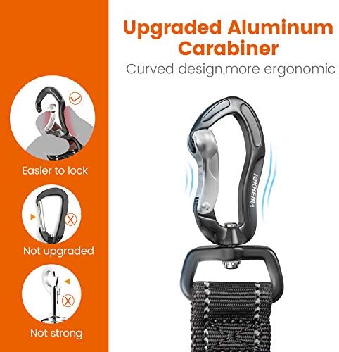 Updated Dog Seat Belt: Our carabiner is made of aviation aluminum and is lightweight and sturdy, with a maximum tensile force of 900 lbs. The curved design is more ergonomic so that it can lock the D-ring more easily.