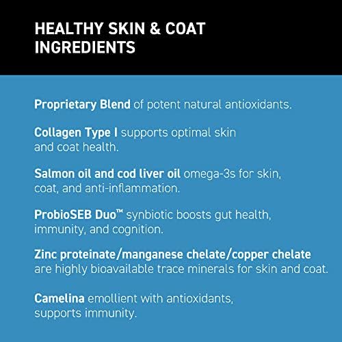 Itchy Skin Supplement – Omega 3 fatty acids promote skin and coat hydration to help dry skin, dull coats, excessive scratching or seasonal allergies in dogs.
