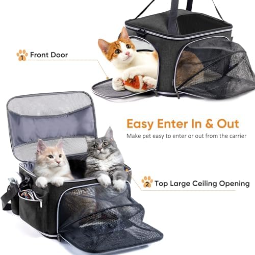 Large Cat Carrier Soft for 2 Cats, Pet Carrier for Small Dogs, Collapsible Cat Travel Carrier for Large Cats 20 lbs, Double Cat Transport Carrier Soft