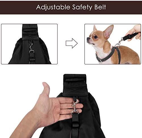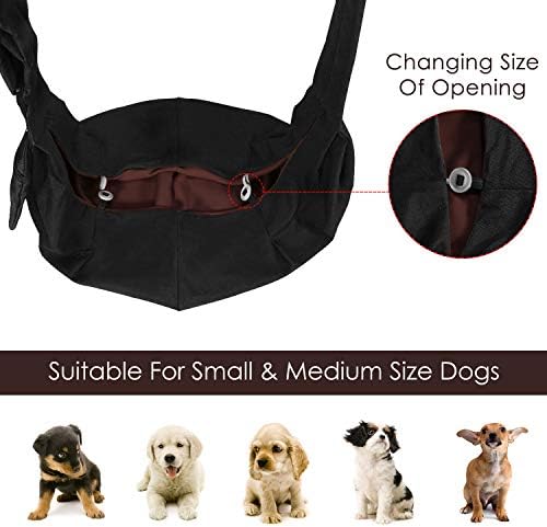 Lukovee Pet Sling, Hand Free Dog Sling Carrier Adjustable Padded Strap Tote Bag Breathable Cotton Shoulder Bag Front Pocket Safety Belt Carrying Small Dog Cat Puppy Machine Washable (Black, M)