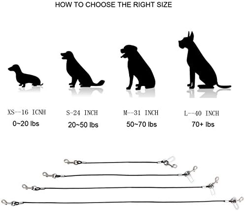Mogoko Chew Proof Dog Car Seatbelt Safety Restraint Pet No-Chew Tether Cable Stainless Steel Dog Leash Puppy Vehicle Seat Belt Strap with Double Clip and Latch Attachment (S Size,24 inch)