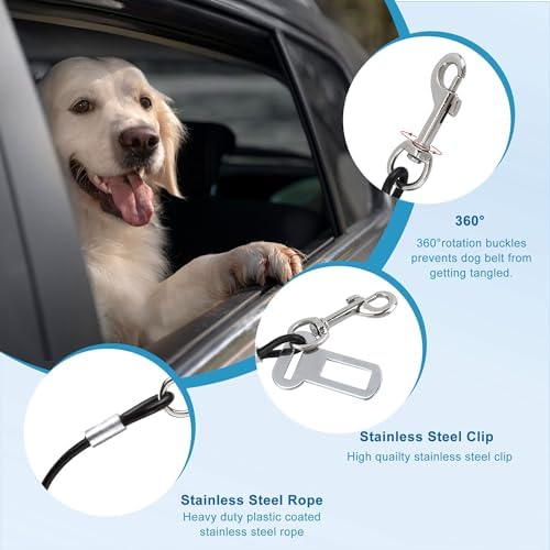 MARTERIAL: Our dog seat belt is made out of heavy duty plastic coated stainless steel rope, the same material used in dog tie-outs.it is indestructible and durable.