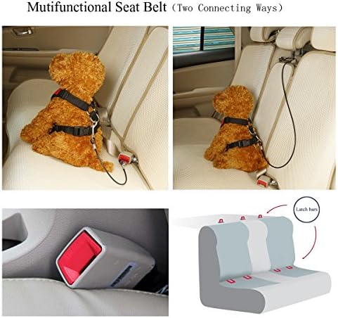 MULTI-CONNECTING WAY: Double seat belt attachment design,you can connect it to your car’s regular seat belt with the nap OR you can connect it to latch bar in your cars back seat creases.so the passager and your pet can use the seat belt in the same time without influence.