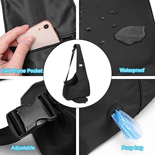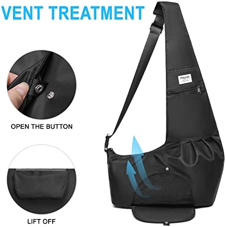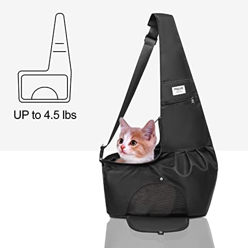 MOSISO Dog Cat Carrier Sling Bag,Small Pet Carrier Curved Zipper Tote Bag Hands Free Adjustable Strap Puppy Bag with Safety Belt Padded Bottom Support for Up to 4.5 lbs Pets Outdoor Travelling, Black