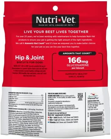 Nutri-Vet Hip & Joint Biscuits for Dogs – Tasty Dog Glucosamine Treat & Dog Joint Supplement – Small Sized Biscuit with 166mg Glucosamine – 19.5 oz – (Package May Vary)