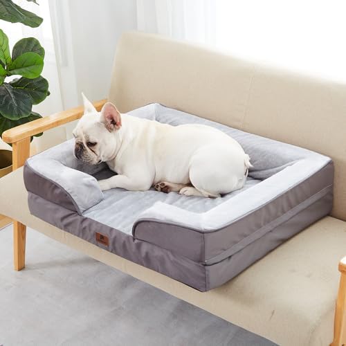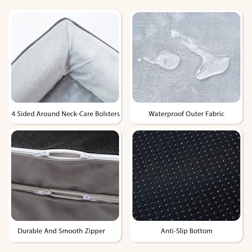 Orthopedic Dog Bed for Medium Dogs – Bolster Egg Crate Foam Dog Sofa with Waterproof Removable Washable Cover, Pet Couch Bed Non-Slip Bottom, Extra Head and Neck Support, Grey
