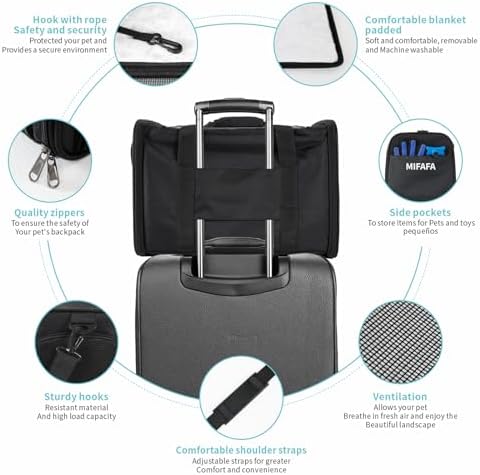 【Good Comfort】3 sides ventilating outlet, front and rear convection, provide your pet with a safe and comfortable travel. The bottom blanket provides a cozy space for pets to nap comfortably, and the blanket is completely removable and machine washable.