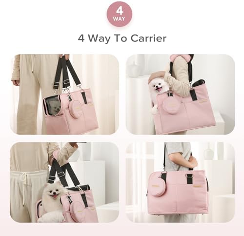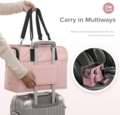Pet Carrier, Cat Carrier for Medium to Large Cats and Small Dogs, with Removable Liner Holds Dog Carriers up to 22 lbs for Small Dogs, Soft Sided Foldable Cat Carrier (PinkLarge)