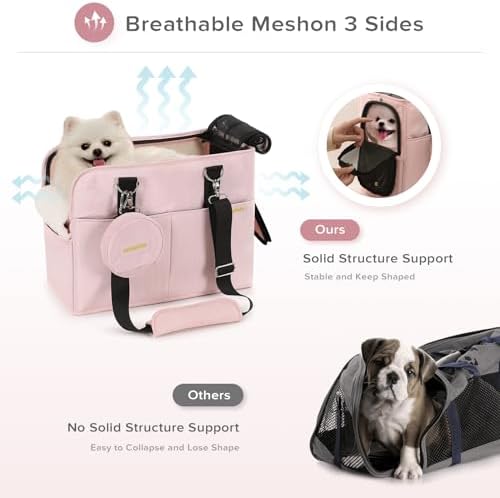 🐶【Elevated Comfort, Everywhere】:Designed with your pet’s comfort and safety in mind, our Pet Bag features five sturdy metal base pads, preventing direct contact with the ground. This elevated design ensures your pet enjoys a cozy space, no matter where your travel take you. Additionally, our bag boasts multiple pockets for organized storage and a unique luggage strap for effortless travel.