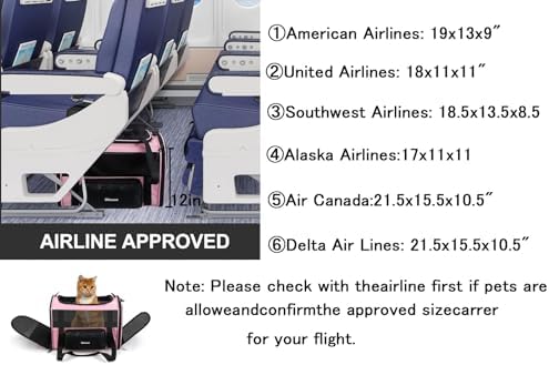 Note–Hi friends, please purchase according to the size of your pet, if you need to take the airline, please contact the airline in advance and confirm the size accepted by your flight. Maximum size requirements of major airline approved dog carriers: ①American Airlines: 19x13x9″②United Airlines: 18x11x11″③Southwest Airlines: 18.5×13.5×8.5″④Alaska Airlines:17x11x11″⑤Air Canada:21.5×15.5×10.5″⑥Delta Air Lines: 21.5×15.5×10.5″