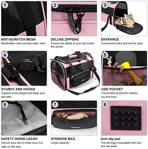 Pet Carrier TSA Airline Approved,Foldable Soft-Sided Pet Travel Carrier for Cats and Dogs Under 16 Pounds, Cat Carrier with Honeycomb HRD Bottom, Adequate Ventilation,5 Mesh Windows