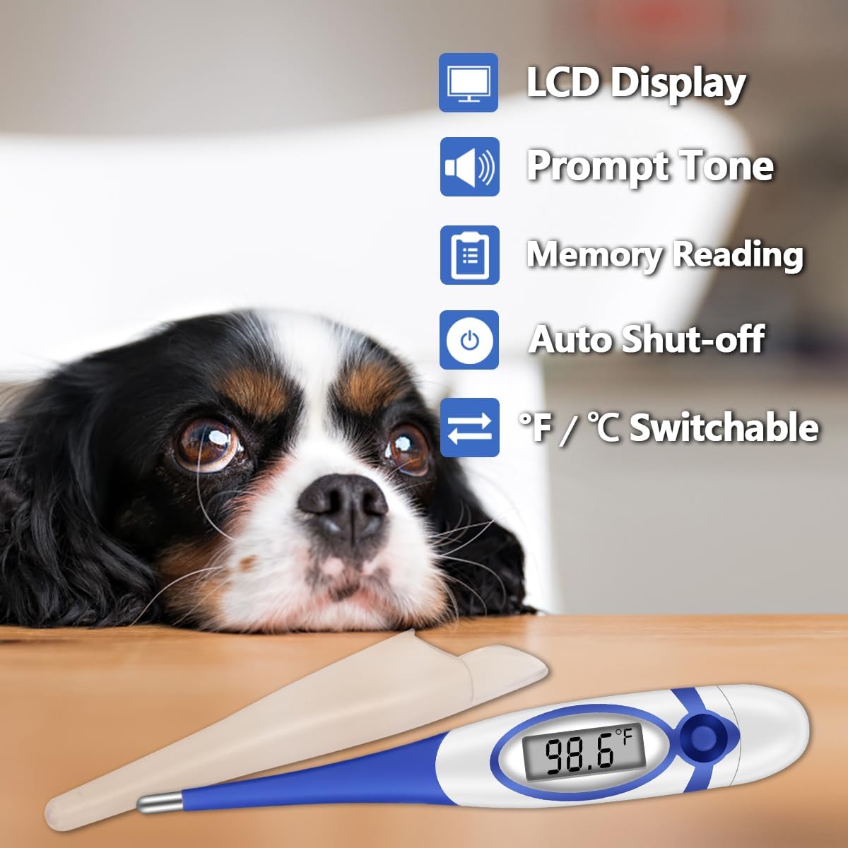 CONVENIENT & USER-FRIENDLY: The thermometer for pets features a helpful beep to signal the completion of the body heat measurement. With a large LCD display, reading temperatures is a breeze. It will shut off automatically after 10 minutes of inactivity