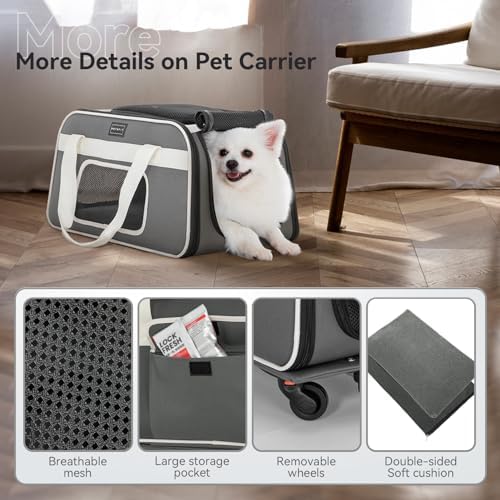 PETSFIT Airline Approved Dog Carrier with Wheels Designed for Small Dogs/Cats with Adjustable Safety Rope & Removable Wheels
