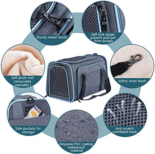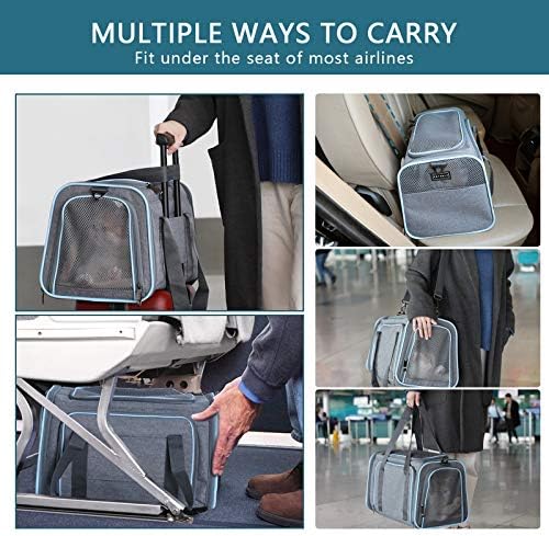 Petsfit Expandable Cat Carrier Dog Carriers,Airline Approved Soft-Sided Portable Pet Travel Washable Carrier for Kittens,Puppies,Removable Soft Plush mat and Pockets,Locking Safety Zippers